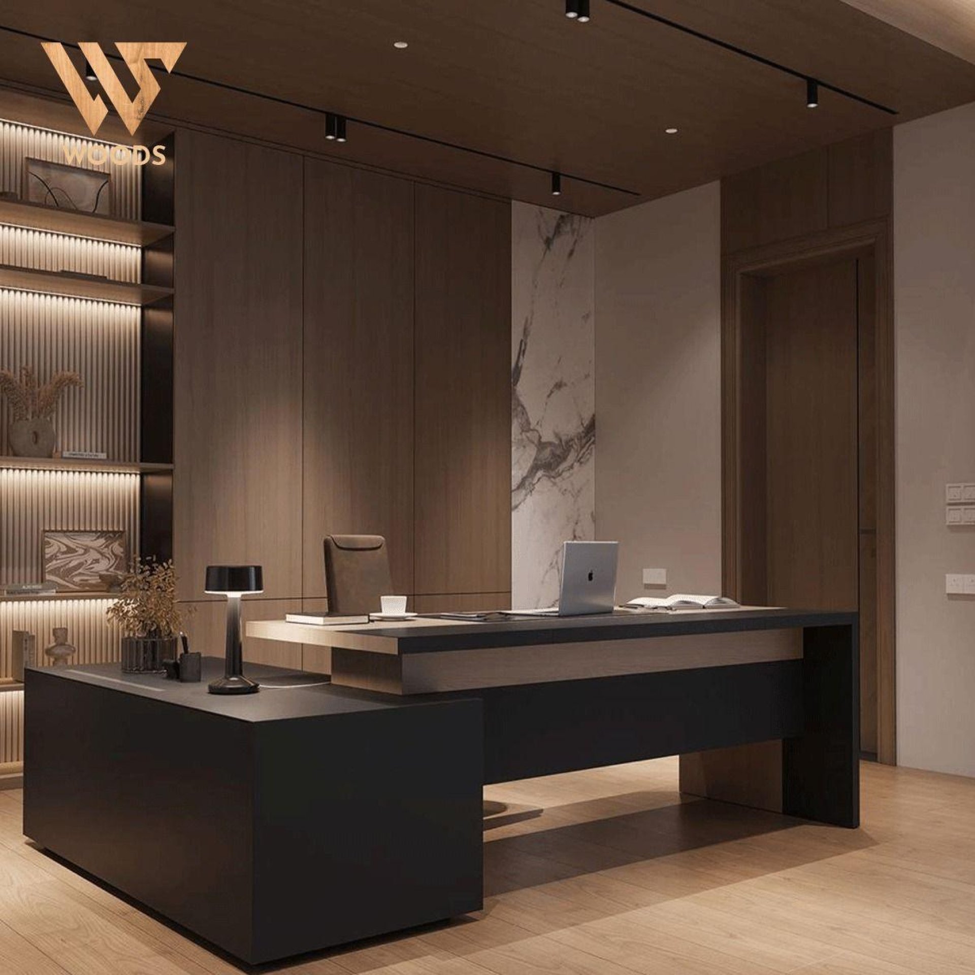 Get a stylish desk with a luxurious design for your private office. It will provide you with a very suitable space to keep your important files and papers from getting scattered and lost, as there is a side part that contains drawers and shelves to meet your different work needs.